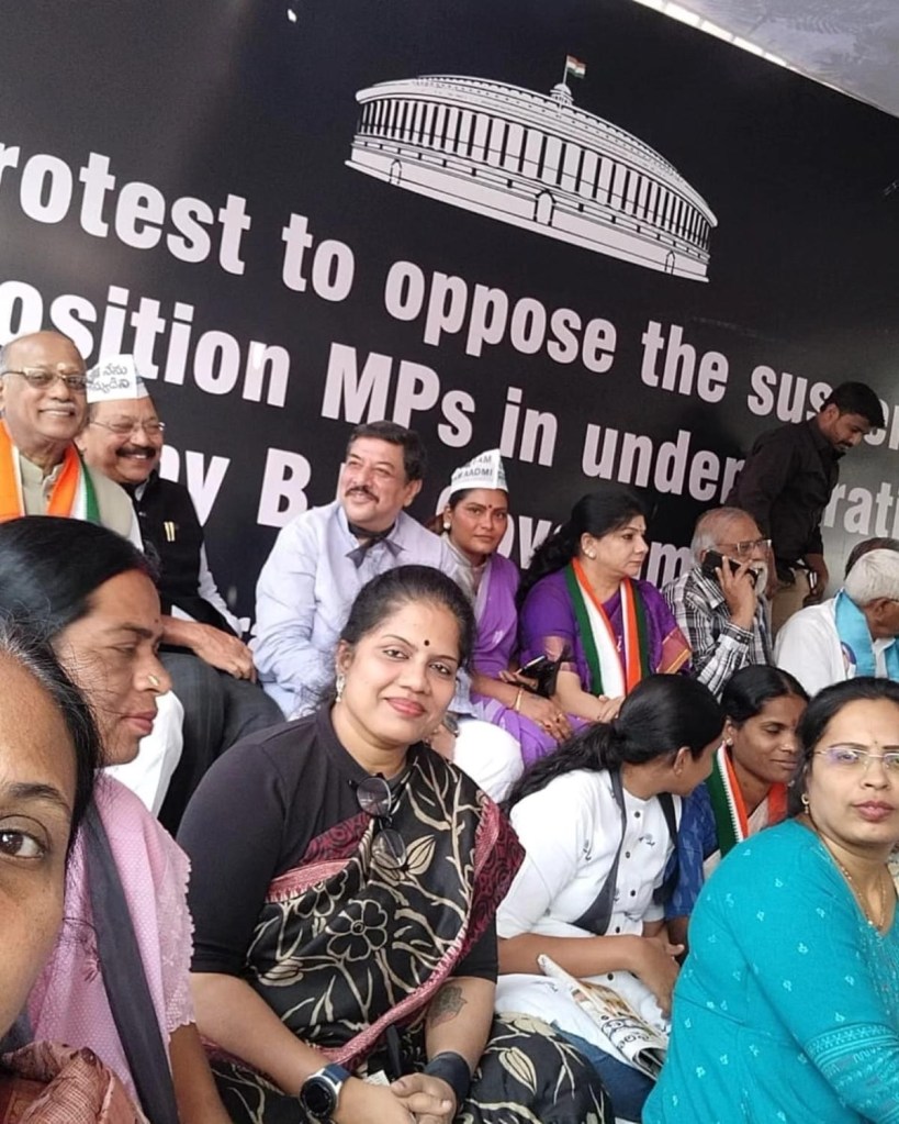 Proud to have actively participated in the recent dharna organized by the Greater Hyderabad Congress, led by the dynamic Shri Mahesh Kumar Goud, the Working President of the Telangana Pradesh Congress Committee. Joining hands with passionate activists, I stood against the unjust suspension of MPs, echoing the ideals advocated by our resilient leader, Rahul Gandhi. Engaging in this political movement has fueled my commitment to championing democracy, justice, and the values upheld by the Congress party. As part of the collective voice for positive change, I continue to contribute to the ongoing efforts for a more equitable and inclusive society.